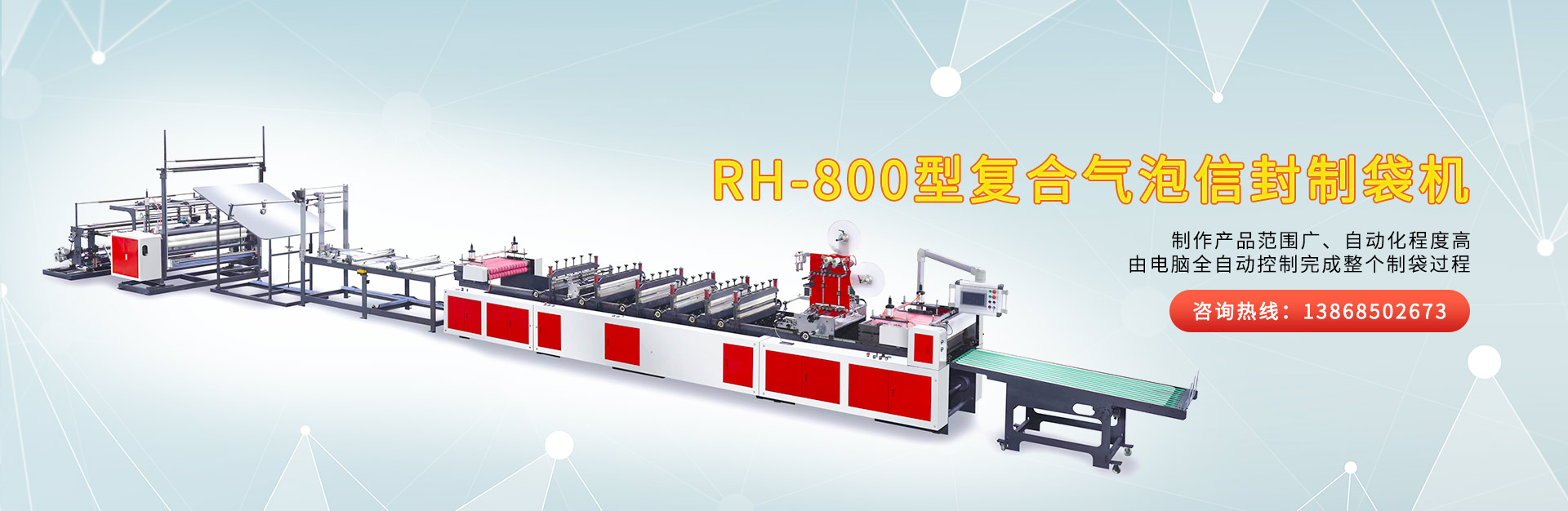 溫州瑞康機械有限公司(www.fbsh.com.cn)主要生產氣泡膜機,快遞袋制袋機,包裝機,制袋機等設備。瑞康機械是國內生產塑料軟包裝系列機械設備的專業廠家之一。產品質量可靠、誠信服務,深受用戶好評,市場占有率節節攀升。